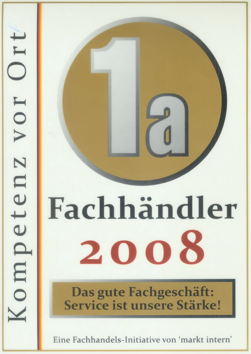 Aufnahme unseres Fachgeschaeftes in den Kreis der 1a Fachhaendler der Verlagsgruppe markt-intern