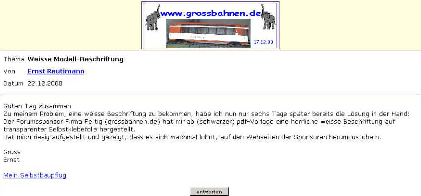 Beitrag Gartenbahn-Forum / Homepage des Kunden